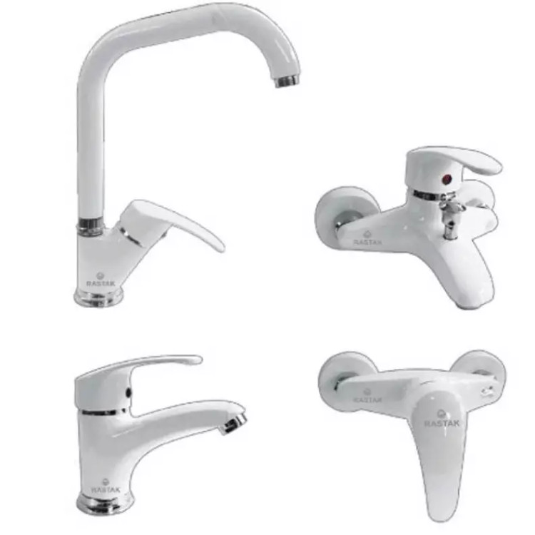 ست کامل 4 تیکه شیرالات رستاک مدل بهار رنگ سفید کروم(تک رنگ)