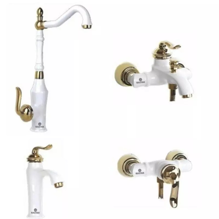 ست کامل ۴ تیکه شیرالات رستاک مدل آرسن رنگ سفید طلایی(دارای رنگ بندی)ارسال رایگان