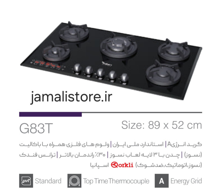 ابعاد اجاق: طول 8۹ سانتیمتر عرض 5۲ سانتیمتر
